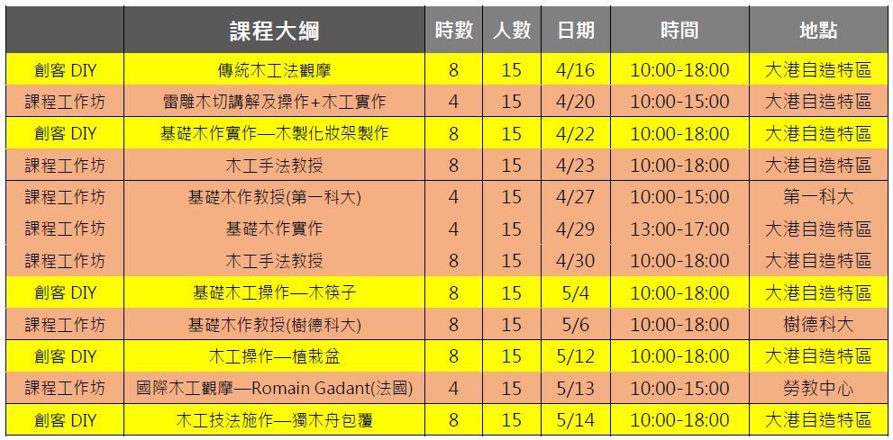 *以上課程可選修,也可以全程參與,將教會完全不會使用木工工具,對木工感興趣卻不知道從何入手的學員。