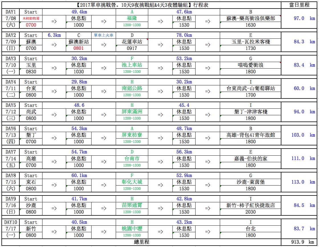 試騎 6/17、行前說明會 7/3、成果發表會 8/6