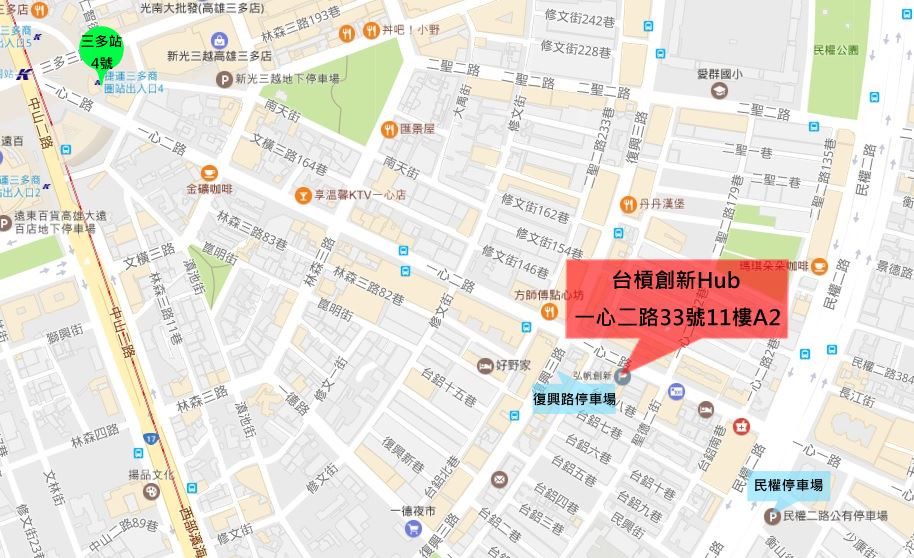 - 位置:台槓創新Hub(高雄市前鎮區一心二路33號11樓A2)
