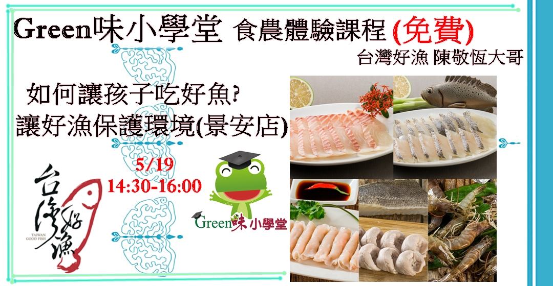 課程主題:Green味小學堂食農體驗課程-如何讓孩子吃好魚,讓好漁保護環境(景安店)