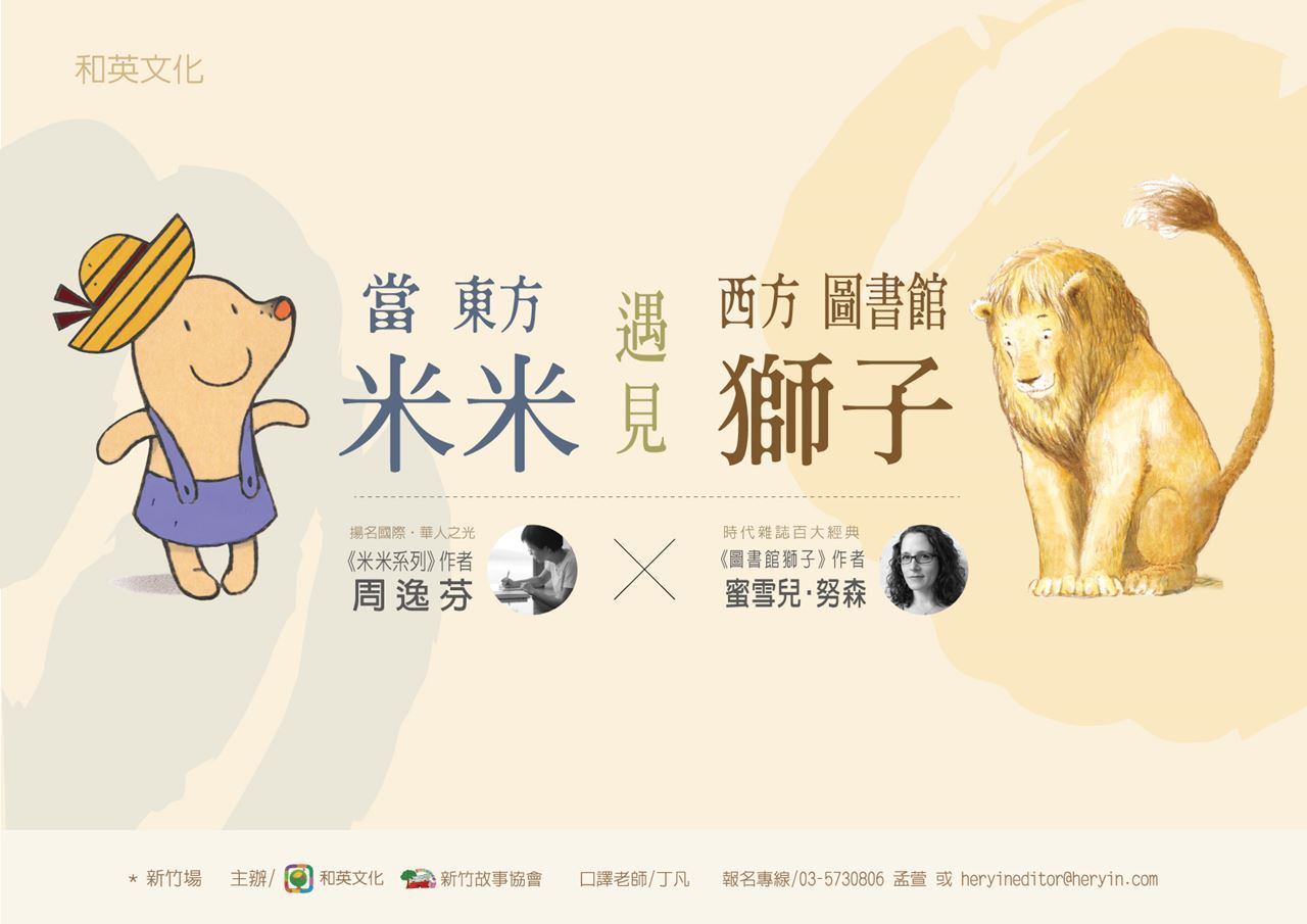 世界經典名作《圖書館獅子》作者-蜜雪兒努森 (Michelle Knudsen)來台灣,與華人之光、揚名國際的《米米系列》作者-周逸芬對談,分享精采創作心得。