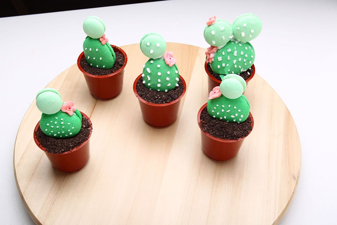 這個看起來像盆栽的巧克力慕斯, 此次配的不是一小朵薄荷葉, 而是自己手作的馬卡龍!!