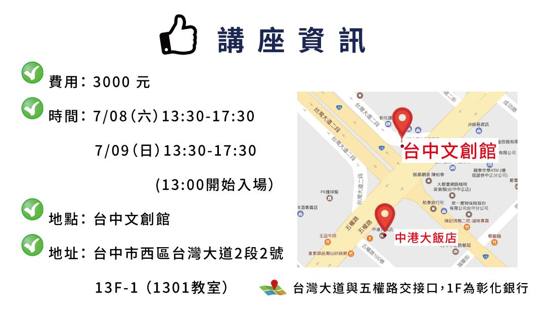 台中市西區台灣大道2段2號13F-1(1301教室)