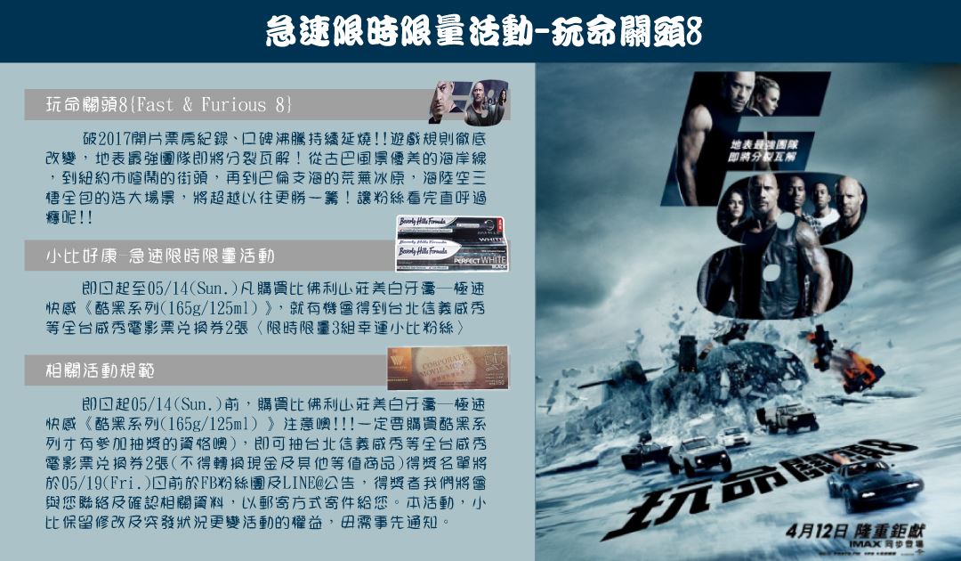 《買牙膏抽電影票哦!!-玩命關頭8 Fast & Furious 8 》