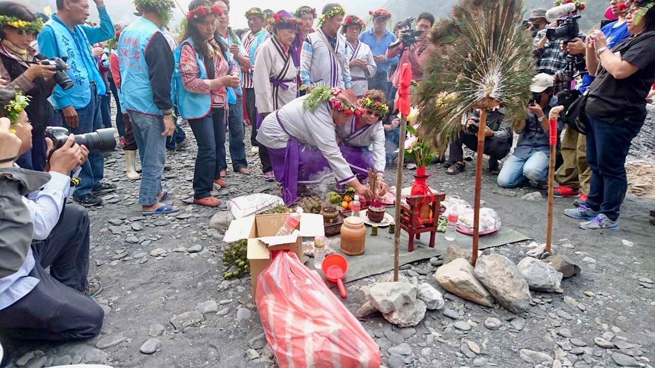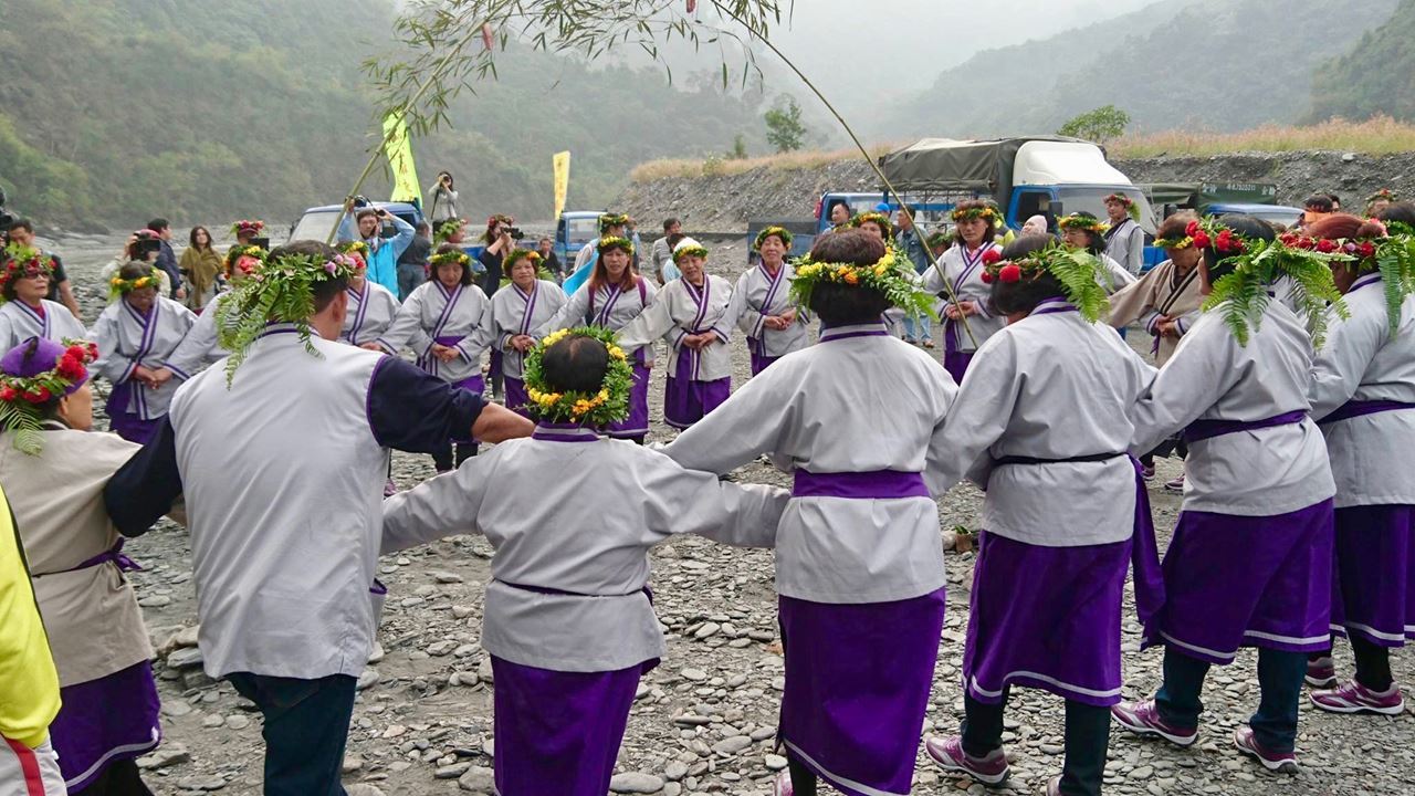 在加蚋埔部落「阿姆」的帶領下,我們緩慢往口社溪畔移動;土牛、點豬、敬天公,一連串古老的記憶,順著「鷹王」頭飾上的老鷹羽毛朝天伸展開來。她凝望著河流念念有詞:若是祢有聽見,請為我們落雨吧⋯⋯。