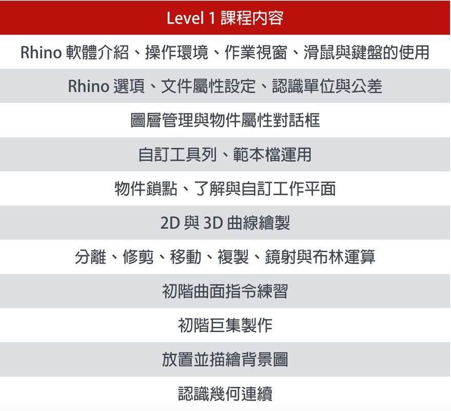 Rhino 3D Level 1 課程
