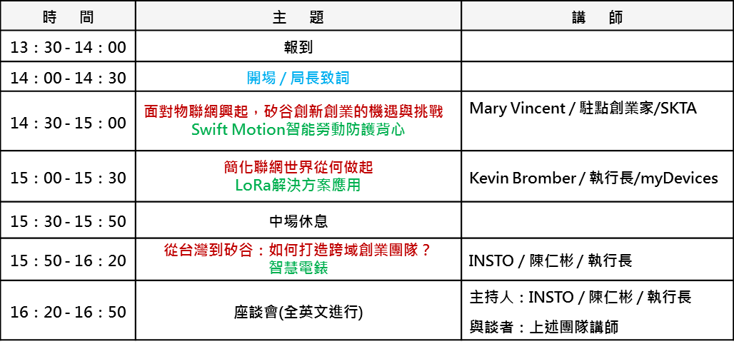 隨著全球進入物聯網經濟時代,由下而上的創新創業熱潮興起,為促進台灣與 (IoT x Maker)國際創業人才接軌,桃園市政府青年事務局舉辦「前瞻矽谷物聯網創新產品交流」,本次特別邀請到6 位矽谷創業家來到桃園與國內創業團隊同台交流,希望能帶動桃園地區培育創新產業青年人才風氣,建立國際友好關係,開拓國內青年國際化視野,共同激盪出創新創業的美好藍圖。