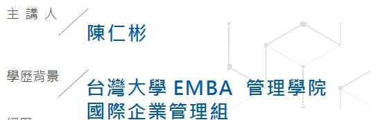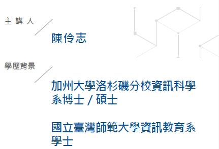 曾任中華電信專案執行長,台灣第一位App軟體設計大學教師,任教育台灣大學資訊系、資策會等單位,獨立遊戲製作破百萬下載。