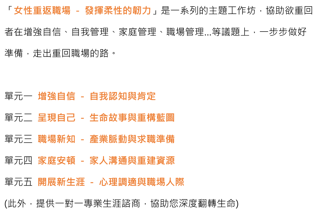 [女性重回職場 工作坊] 增強自信 - 自我認知與肯定