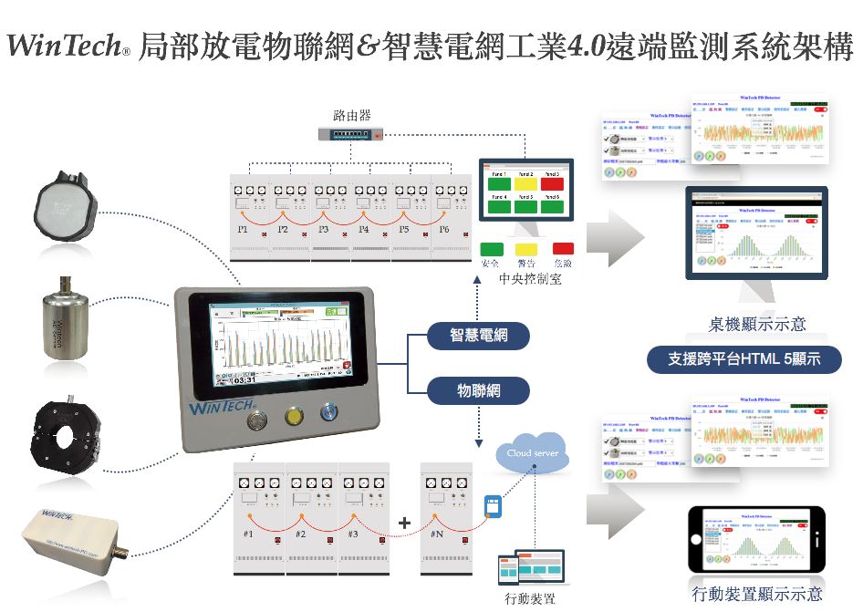 成浩科電(股)依據IEC62478國際標準法規下定性檢測,經過無數次實驗室與實境監測驗證,成功自主發明出優於國際水平與精準可靠的多重物理量局部放電(partial discharge)在線檢測技術專利;在硬體的部份,我們生產製造多元又最齊全的感測器,並取得CE&TAF認證;在軟體部份,我們利用局放電所發生出的多重物量微弱訊號源(mv)特性,有效排除干擾擷取所需分析的高頻和電訊號,設計出可即時判斷局部放電之波形、相位、趨勢與準確定位分析軟體,用於24小時監測紀錄局部放電現象,完全符合工業4.0之智能電網下在線監測系統。