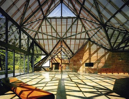 MIHO美術館是由日本一個非常大的宗教團體「神慈秀明會」在1997年委請貝聿銘大師設計建築而成,神慈秀明會的教義首重「淨化」,因此巧妙地結合了自然與藝術。貝聿銘大師擅長的鋼骨結構和玻璃帷幕,用一個一個的三角形,把美術館打造成有趣的幾何世界。