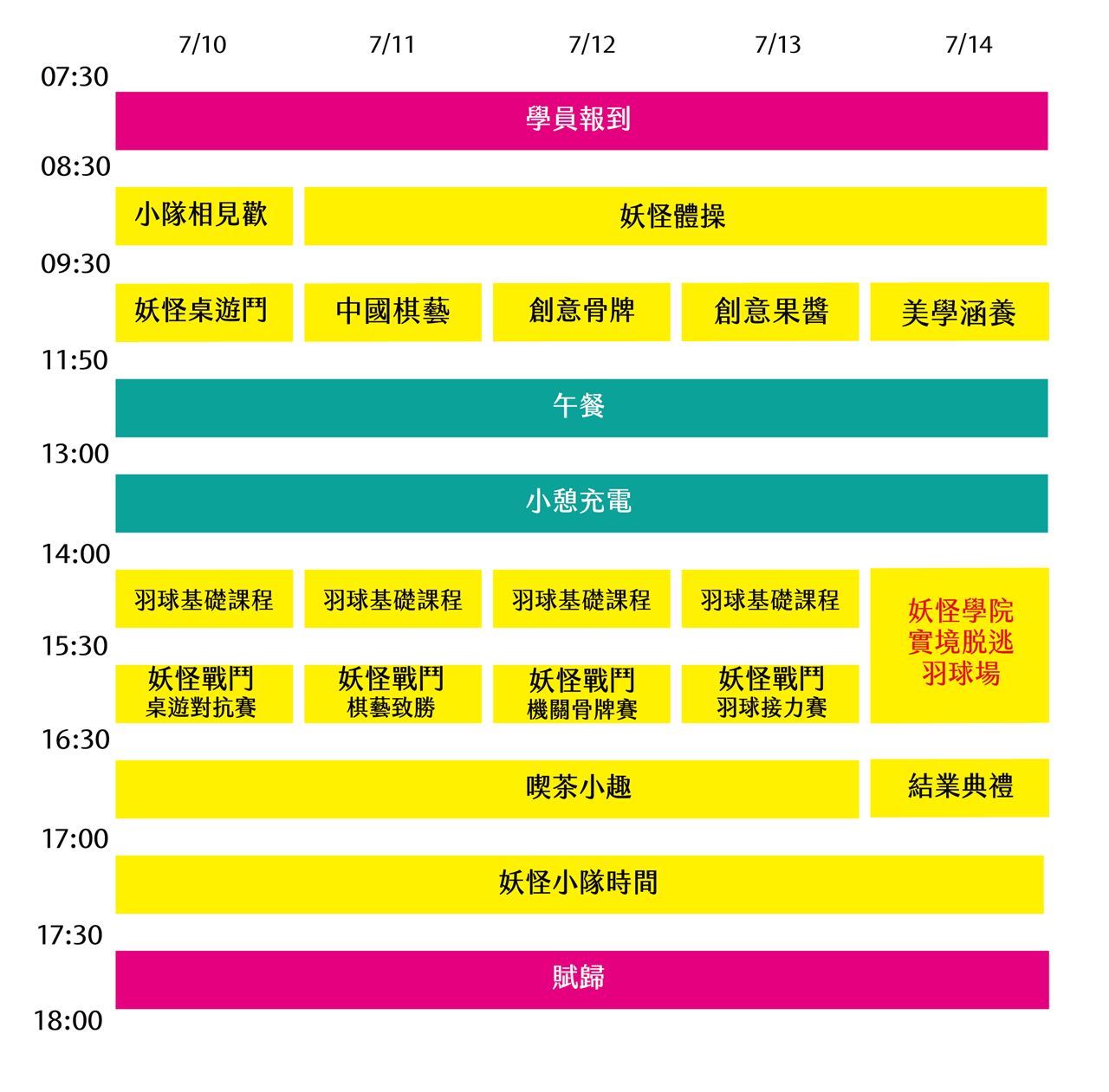 7/10(一)-7/14(五) 妖怪學院 - 創意果醬羽球營
