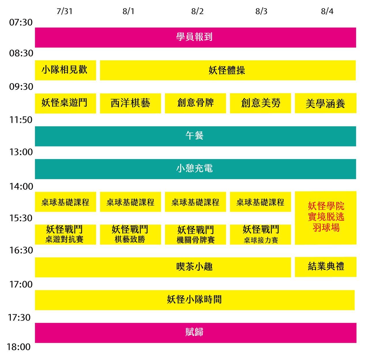 7/31(一)-8/04(五) 妖怪學院 - 創意勞作桌球營