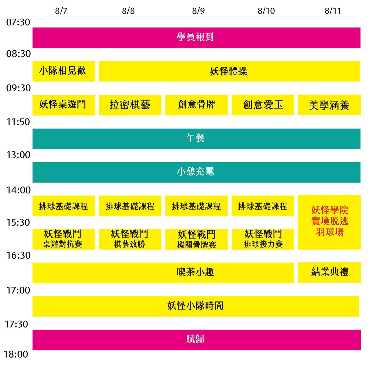 8/07(一)-8/11(五) 妖怪學院 - 創意愛玉排球營