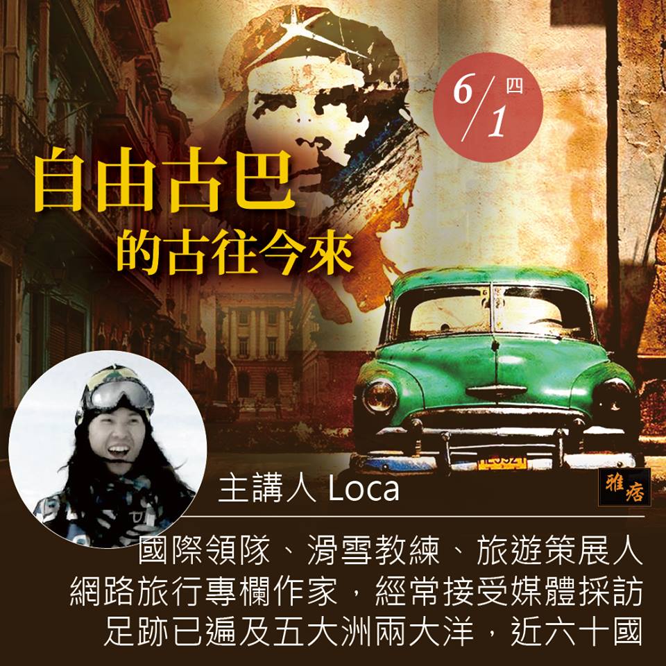 古巴,是一加勒比海的島國,也是西班牙在拉丁美洲最早的殖民地之一,同時還是目前世界上僅存不多的社會主義國家,雖然「自由古巴」是一種混合可樂、蘭姆酒、青檸萊姆的混調酒名,但卻也同時道盡了古巴的革命歷史,此次講座,將從歷史和人文的角度來介紹古巴,因為在這一塊奮鬥的島嶼上,總是洋溢著令人振奮力量的精神與人物故事。