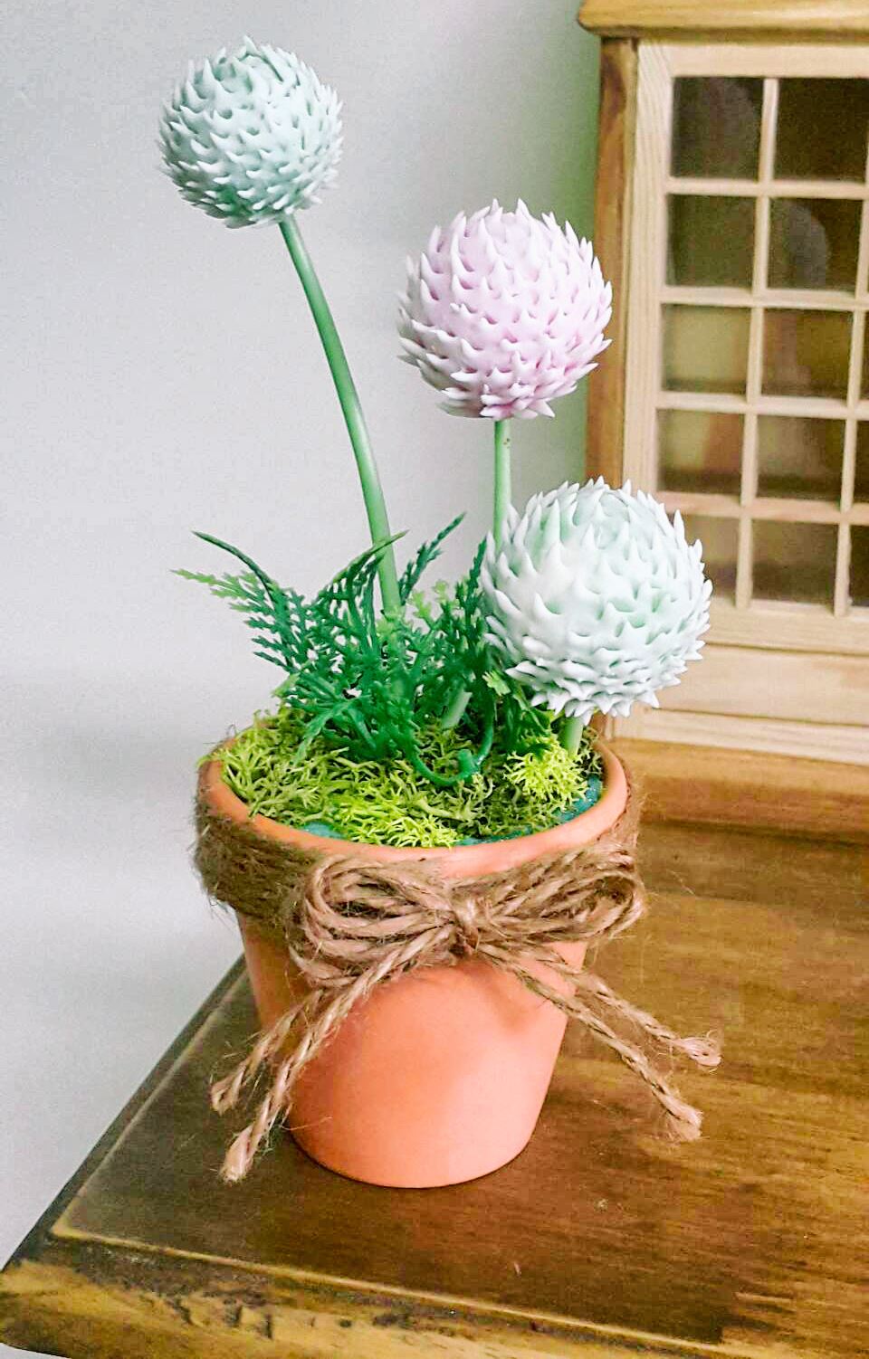 使用輕黏土製作的圓仔花比真的花兒還要持久,永不凋謝