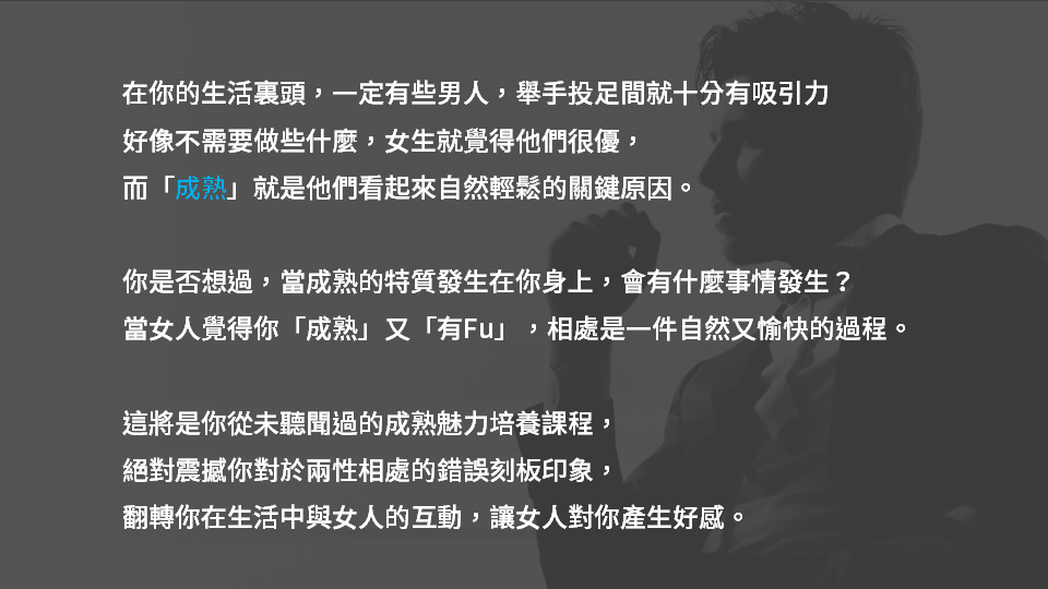成熟男人特質,讓你自然散發超Man氣場,扭轉女人對你的印象。