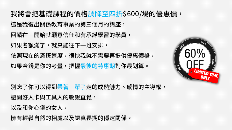 P.S. 本講座在七月份將會調整價格,若有興趣學習的夥伴,請把握機會。