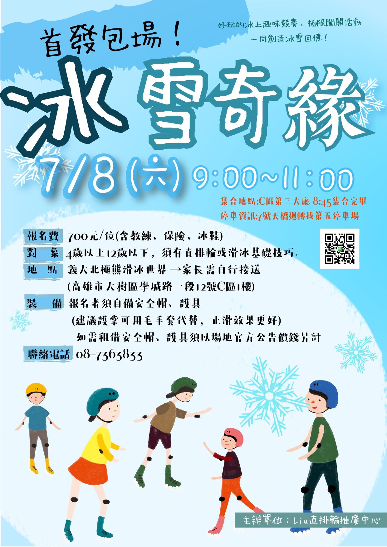 4.家長需自行接送。地點:義大北極熊滑冰世界(高雄市大樹區學城路一段12號C區1樓)