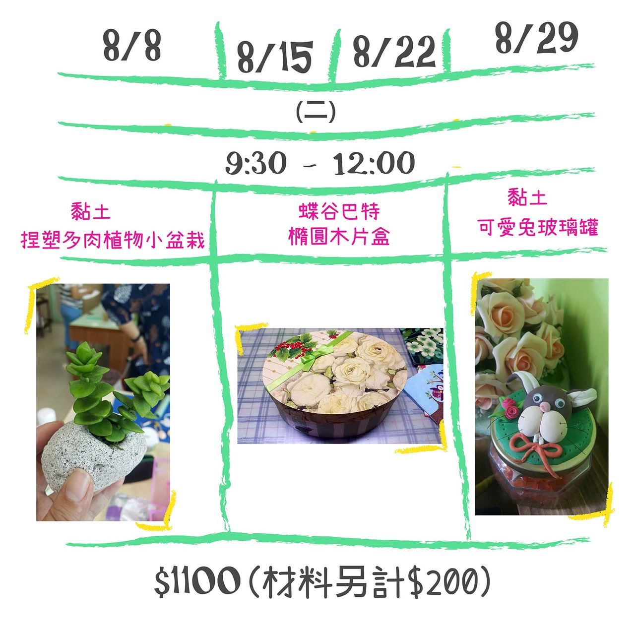 8月份 每週二(9:30-12:00)8/8 、8/15、8/22、 8/29),共4堂課】