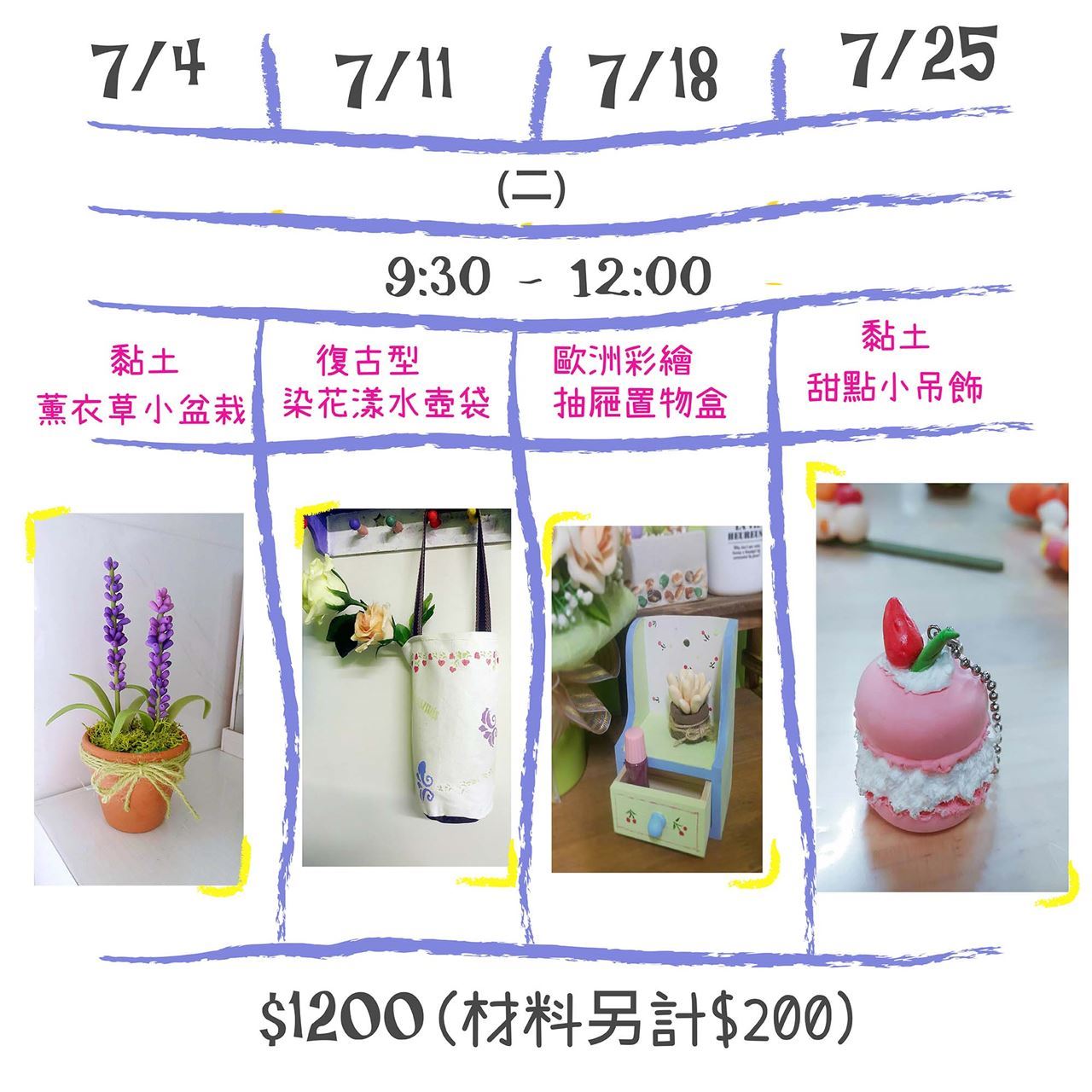 【7月份 每週二(9:30-12:00)7/4 、7/11、7/18、 7/25,共4堂課】