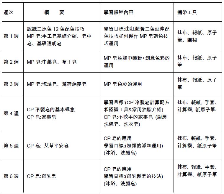 (四)選課條件:對手工皂有興趣的學員(無經驗可)