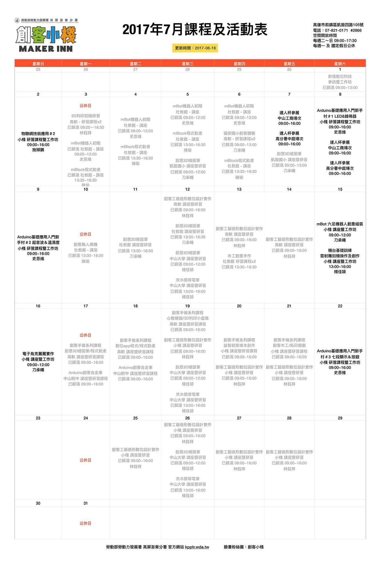 以上課程地點皆為: 勞動部勞動力發展署高屏澎東分署-創客小棧 (806高雄市前鎮區凱旋四路105號)。
