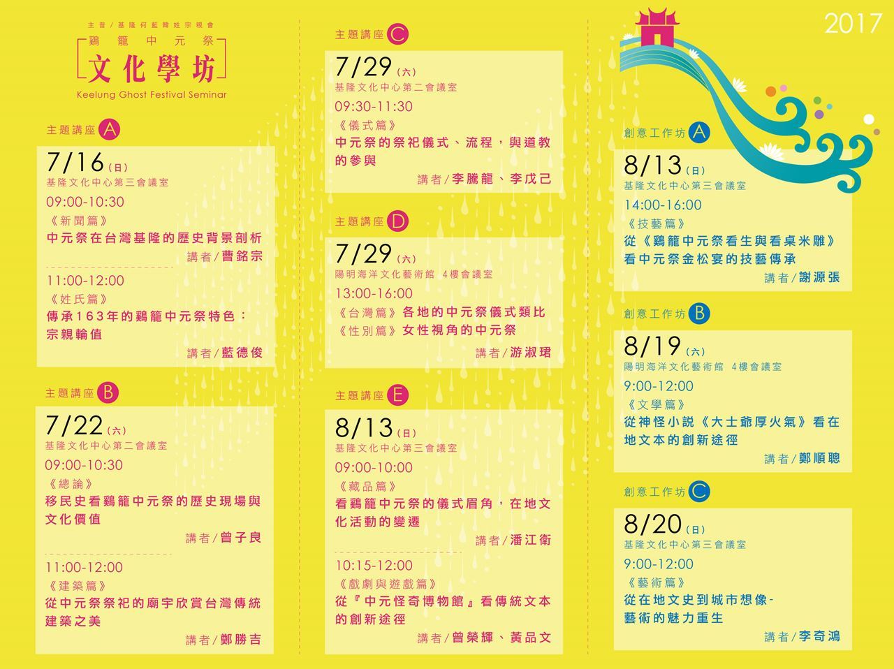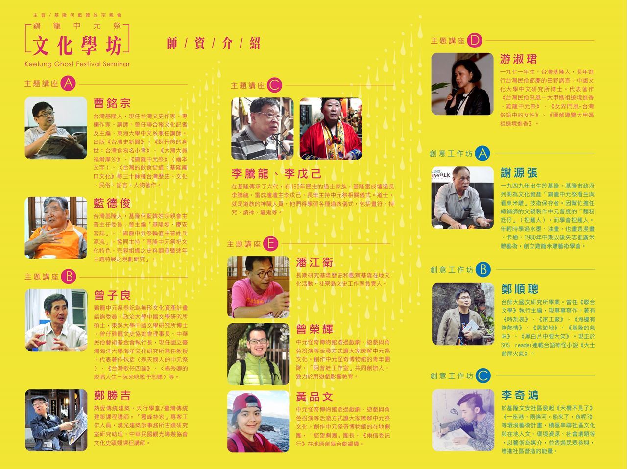 1.主題講座:以不同面向瞭解中元祭,包含科儀、移民生活、基隆史、女性視角、建築、字姓宗親會等