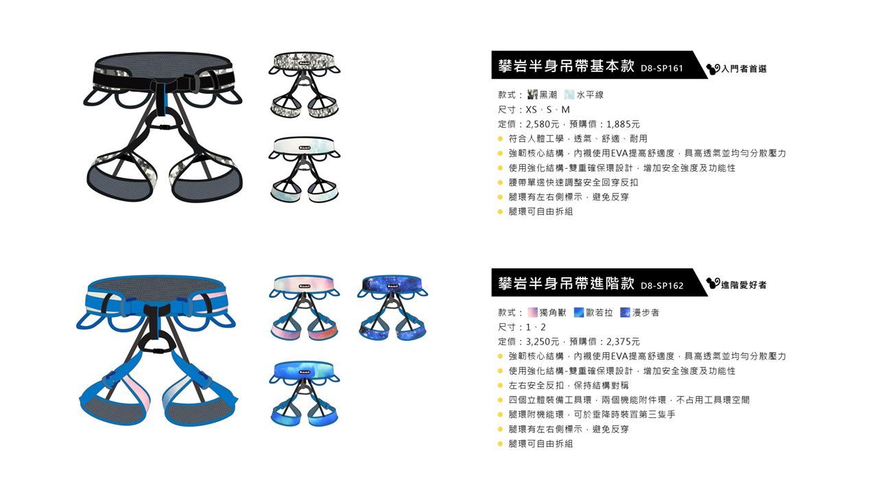 double8 進階款攀岩吊帶一件,售值 3250 元。