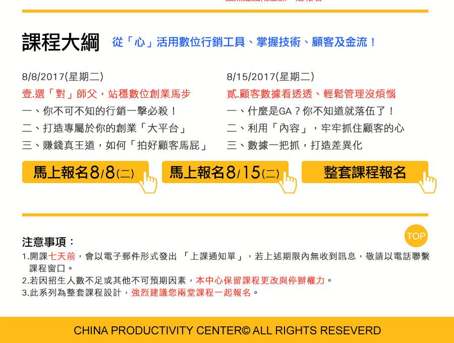 "課程設計為一系列課程,強烈建議您兩堂課程一起報名,由於反應熱烈,*早鳥優惠持續至25號!*"