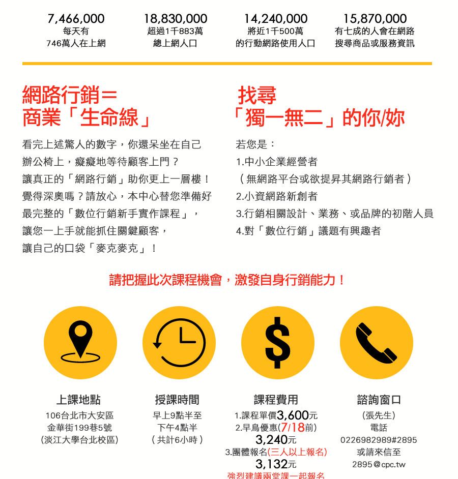 課程洽詢:(02)26982989分機2895 張先生 或e-mail至2895@cpc.tw