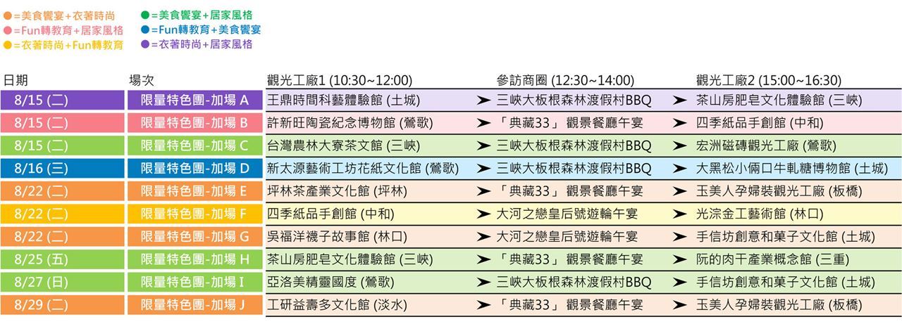 每條遊程都帶著您體驗2家新北觀光工廠、1處鄰近商圈與景點 ♪