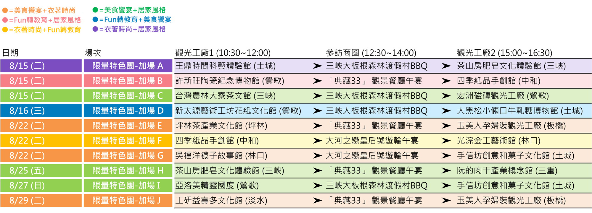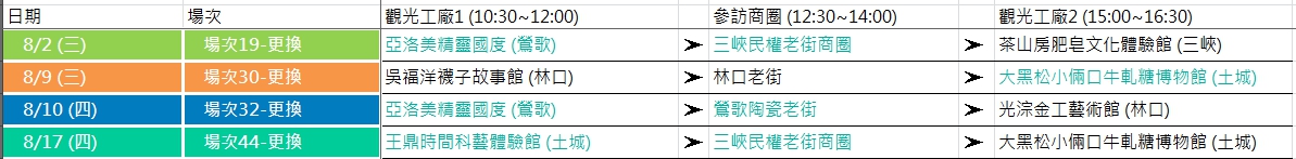 因廠商因素,觀光工廠旅遊之原維格餅家相關場次更動如下(綠字為更換處)