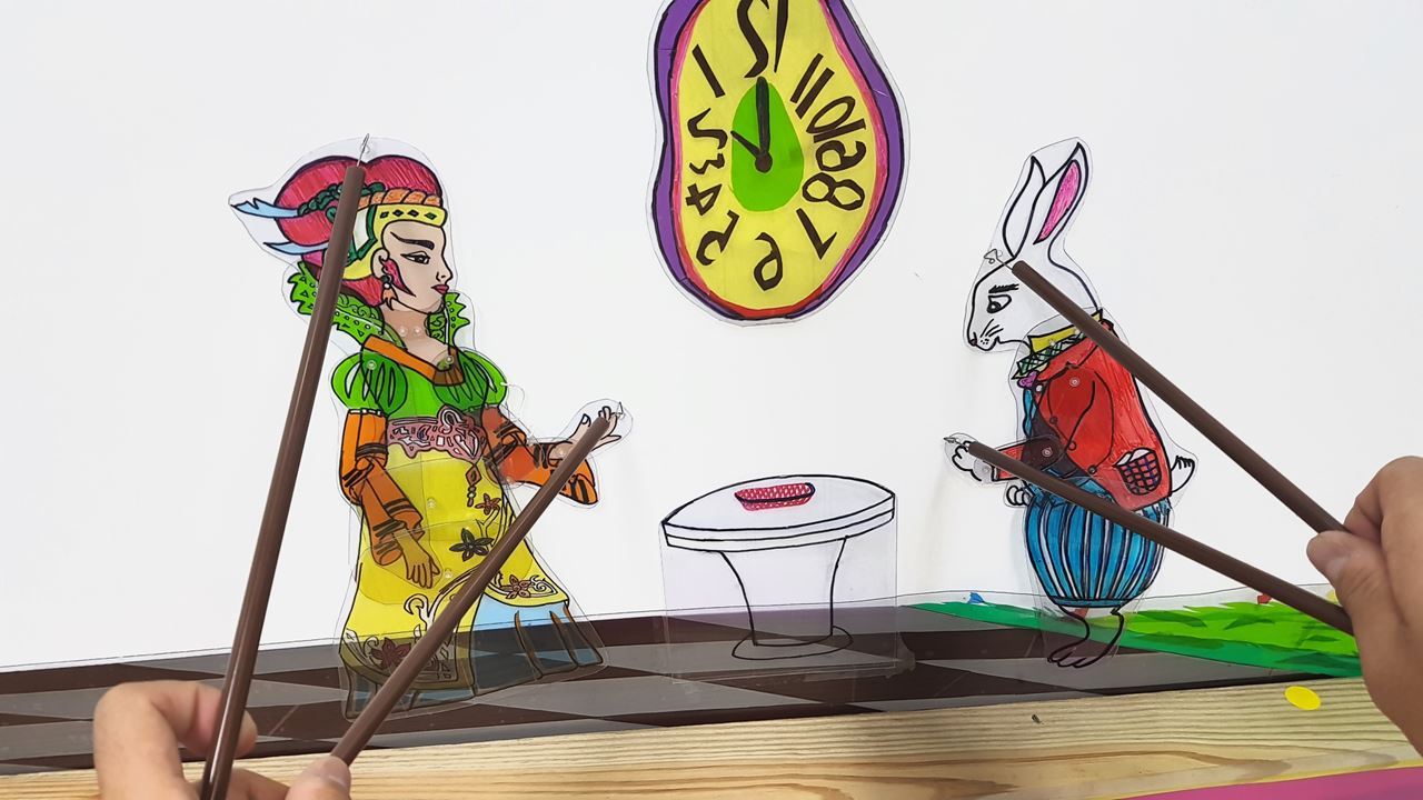 皮影戲館導覽解說->戲偶 DIY製作->上台體驗表演