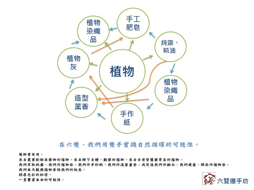 我們萃取純露、我們作植物染、我們作手抄紙、我們作造型薰香。成灰後我們作鹼水,我們建藍、媒染作植物染。