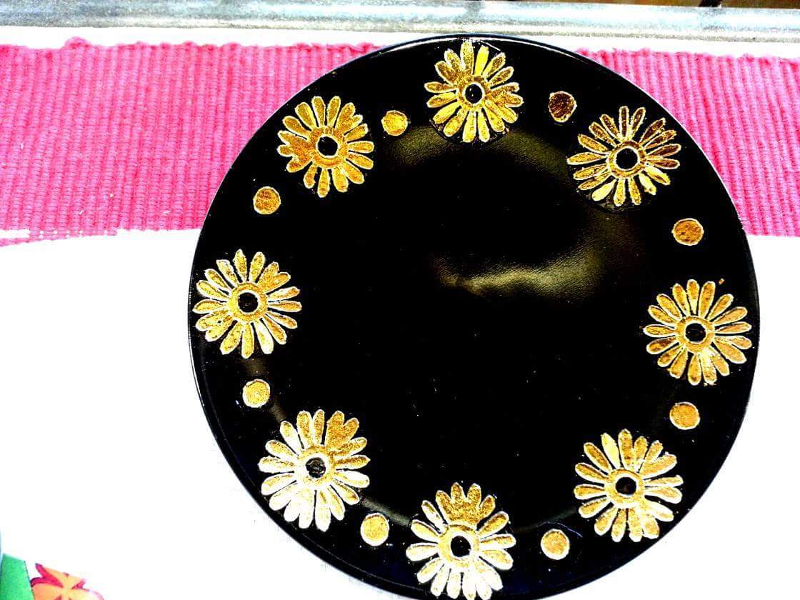 - 主題:金光輝映-金箔貼附漆盤(直徑約12公分)