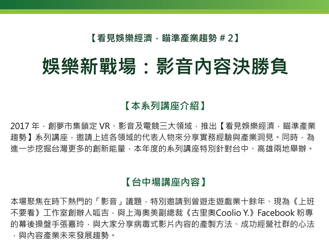 【看見娛樂經濟】系列講座 # 2(台中場)