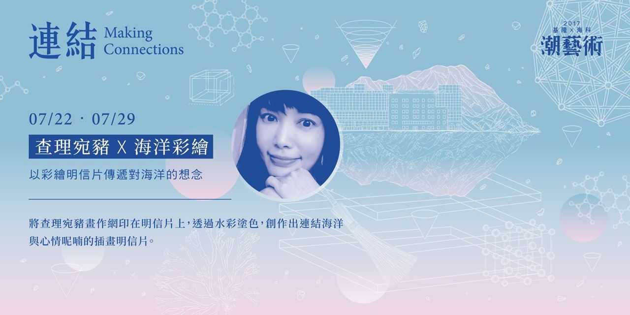 將查理宛豬畫作網印在明信片上,再利用水彩塗色。在查理宛豬帶領下,將心中對海洋的關懷及喜愛用畫筆、色彩一一織成圖像,創作出連結海洋與心情呢喃的插畫明信片。創作完後參加成果展,展後寄回自己手中。