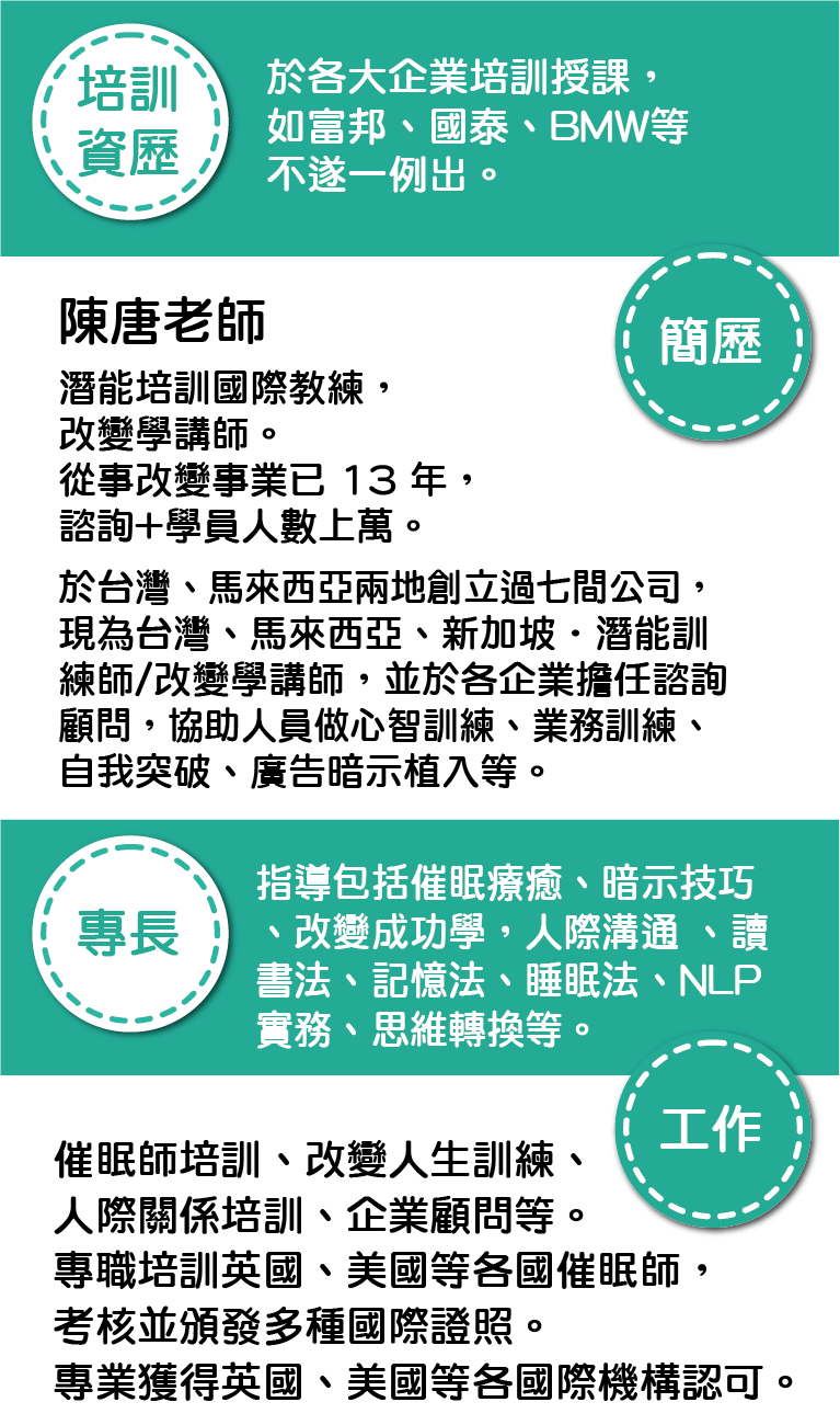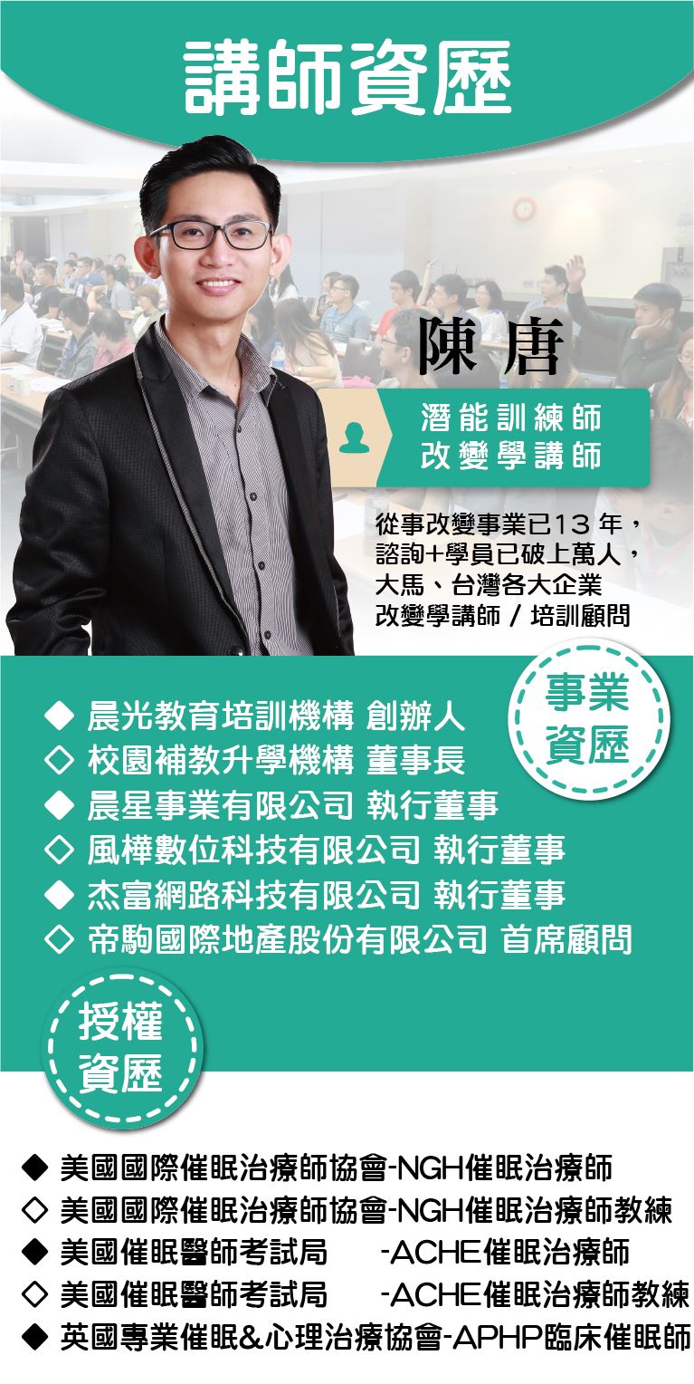 上課地點:《台北場》台北市中正區館前路71號10樓(新領域教育中心)