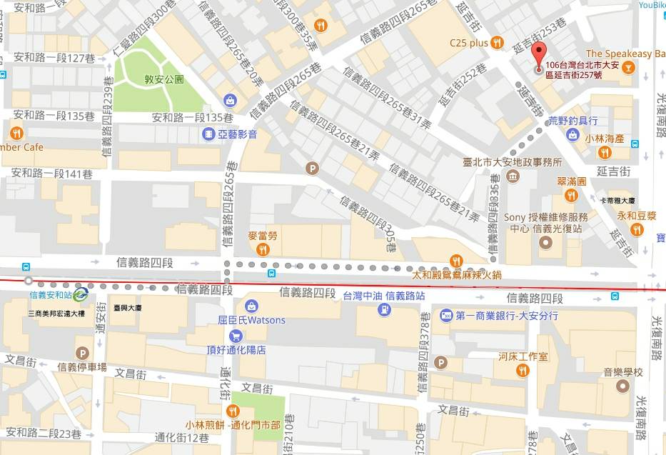 位於大安區、光復南路與信義路中間的延吉街257號(捷運信義安和站步行約5分鐘),
