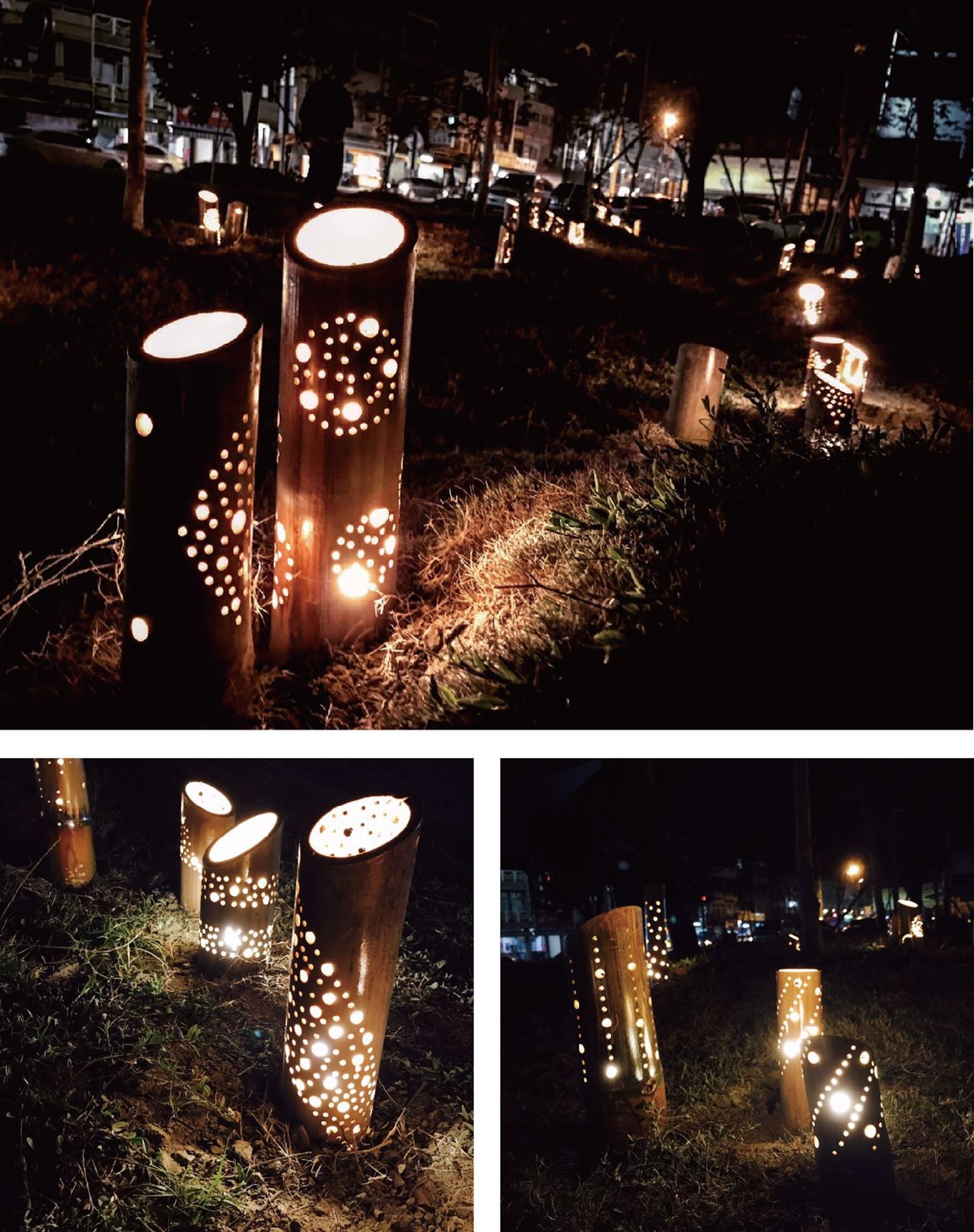新化武德殿位於新化區的市中心,而在進行修復之後,更成為新化著名的景點之一,搭配上對街的大目降廣場與周邊的日式建築文化園區,亦是居民與觀光客們聚集的場所之一。然而,這樣人來人往的場所,卻沒有足夠的燈光設備提供人們在夜晚時使用。為了解決這個問題,利用在地元素-竹子,與燈做結合,遍布在大目降文化園區的綠地上,藉由竹燈的設置,解決燈光照明不足的問題,亦能降低因環境幽暗而產生的安全隱憂。因此民眾能更放心更安全地在夜晚時使用大目降圈區進行活動。再加上竹筒燈帶來䌀靜的氣氛渲染、大目降園區便能成為民眾夜晚活動、交流談心的新場所。