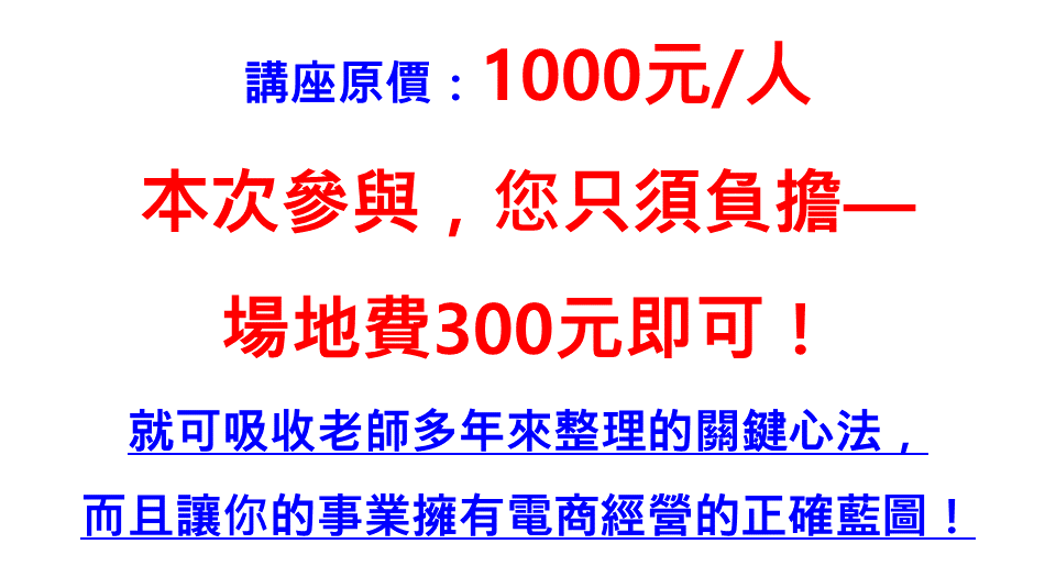 課程時間:13:30~16:00 (13:00報到進場,共2.5小時)