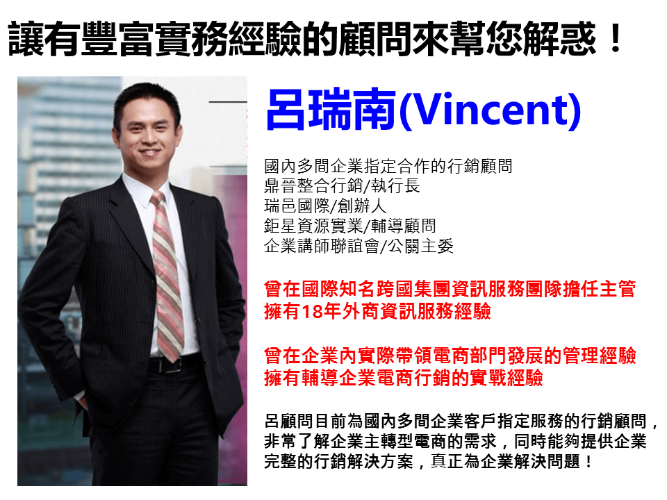 2、欲投入電商或數位行銷領域的專業人士與創業家
