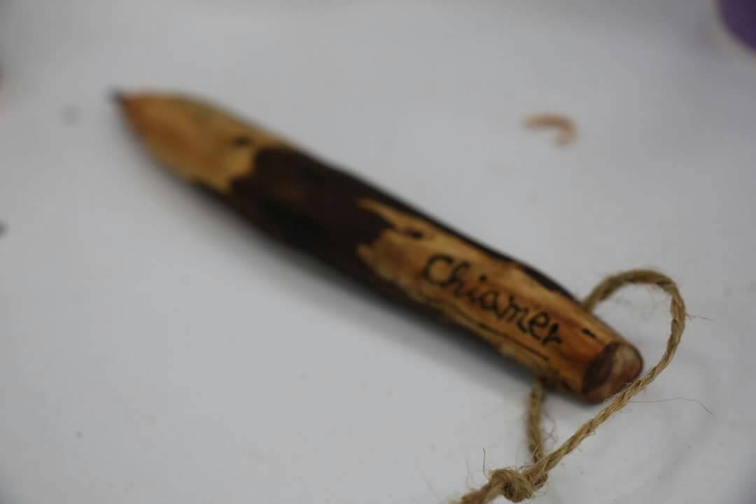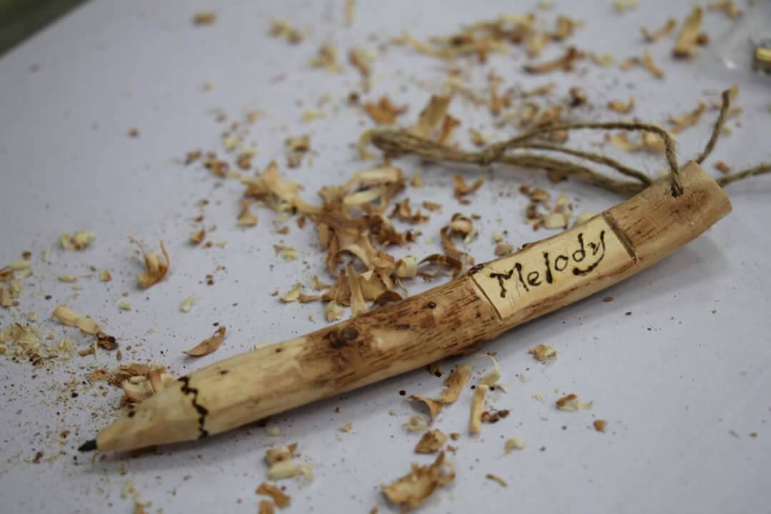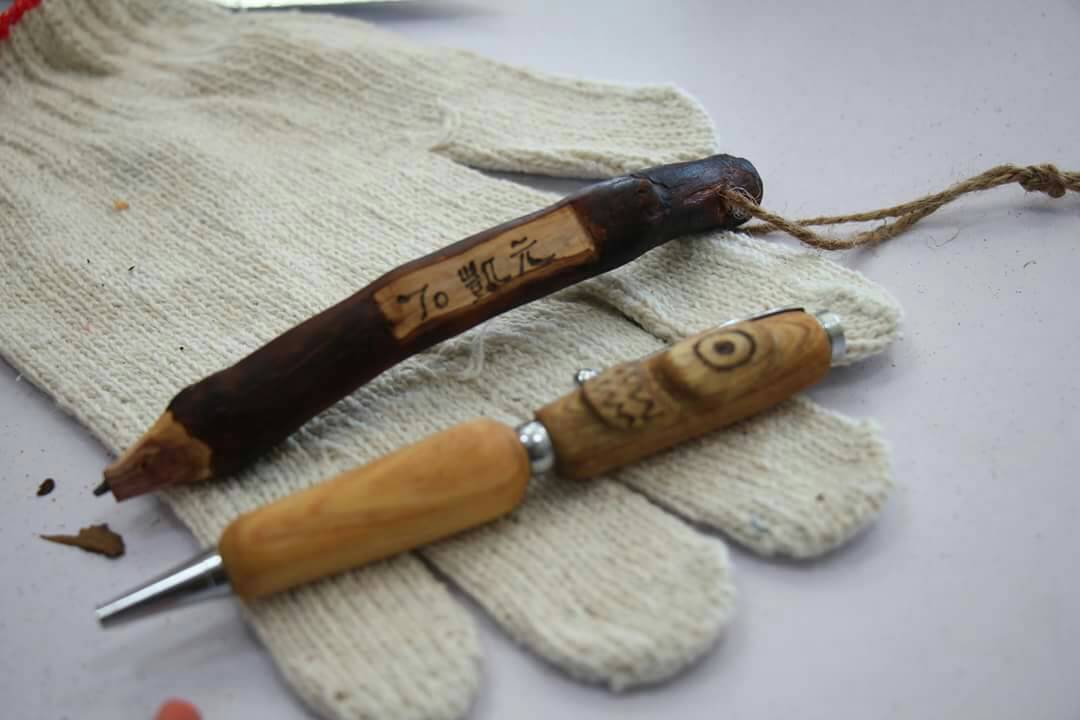 |時間|上午場10:00~11:00、下午場14:00~15:00(每場1小時) |課程說明|原木樹枝鉛筆,烙寫專屬文字,獨一無二吊飾。教導正確使用嫁接刀工具,視樹枝生長特性,決定保留樹皮程度,並雕刻出烙寫文字區域,最後使用電烙筆書寫文字後上蠟即是可完成美感木鉛筆。 |