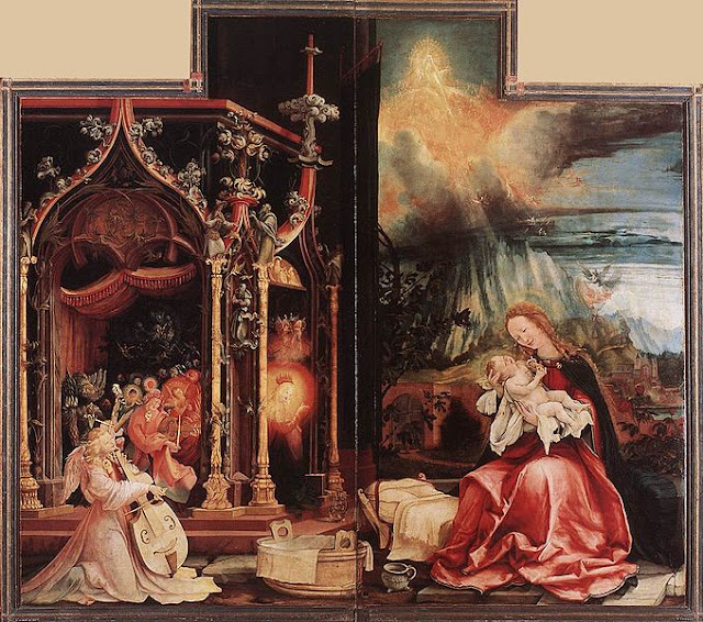 ●格呂內瓦爾德是德國文藝復興繪畫中最不可思議的畫家之一。他用色絢麗奇幻,善於表現純樸激動的感情,是一位植根於民間藝術土壤又充分吸收了新技法的大師。