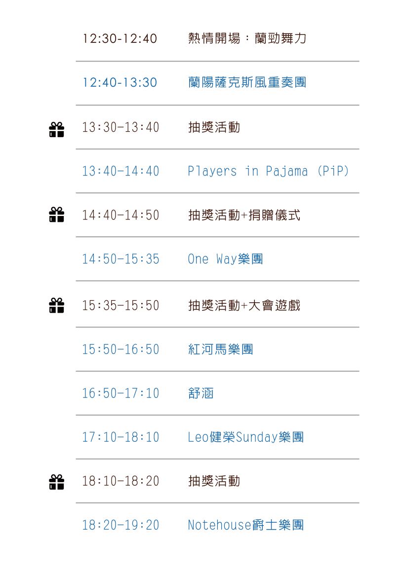 贊助單位:雄獅旅遊、超品起司烘焙工坊、山寨村、E7Line、富順烤豬、