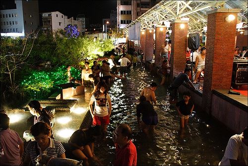 公園週邊非常熱鬧,要逛街要買伴手禮都不成問題!很特別的是大馬路邊就是免費的露天泡腳池,來到這裡脫掉鞋襪隨興的坐下來泡泡腳是旅人們必做的事!