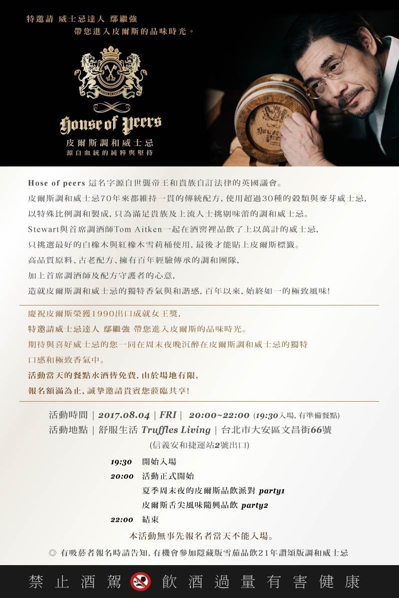 期待與喜好威士忌的您一同在周末夜晚沉醉在皮爾斯調和威士忌的獨特口感和極致香氣中。
