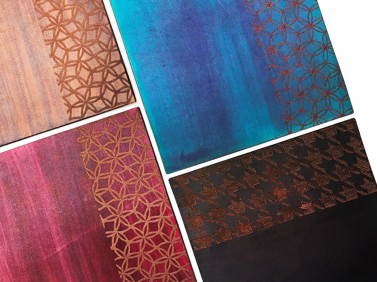 FabCafe 擁有數位製造設備當中的雷射切割機,可以將您繪製的圖案運用Adobe Captrue APP拍照匯入成為向量圖形,也可使用APP本身的功能將單一圖檔變成四分連續的圖案,雷射雕刻在您的皮件表面上,讓您的作品除了手做感之外,更輕鬆增添個人風格與特色!