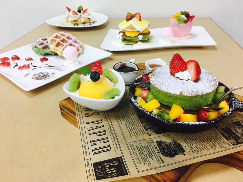 特製鮮奶油、特製獨家巧克力咖啡鮮奶油、煉乳鮮奶油…等各式口味鮮奶油,卡士達醬製作、自製巧克力醬、…等等。裝飾和擠花技巧、水果主題搭配之組合技巧、頂級蓮花脆餅、巧克力碎片、手工烘烤的美味果仁…等等變化出各種繽紛組合,創造出各種不同口感的美味鬆餅。